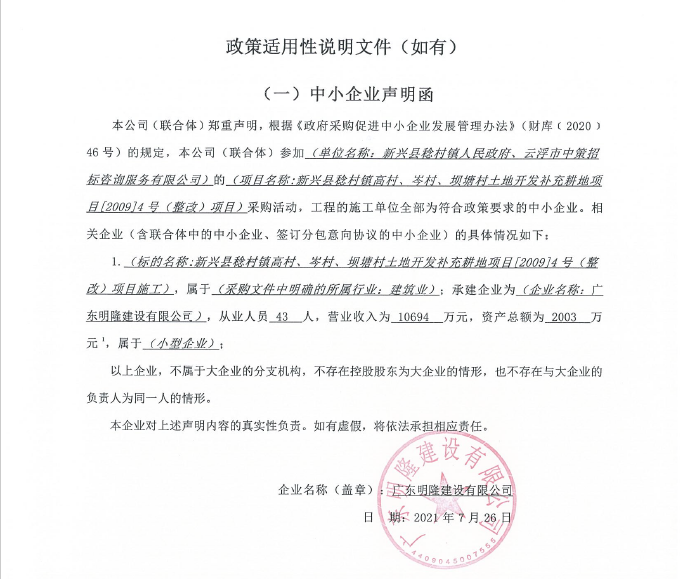 合同包1(新興縣稔村鎮高村、岑村、壩塘村土地開發補充耕地項目[2009]4號(整改)項目):